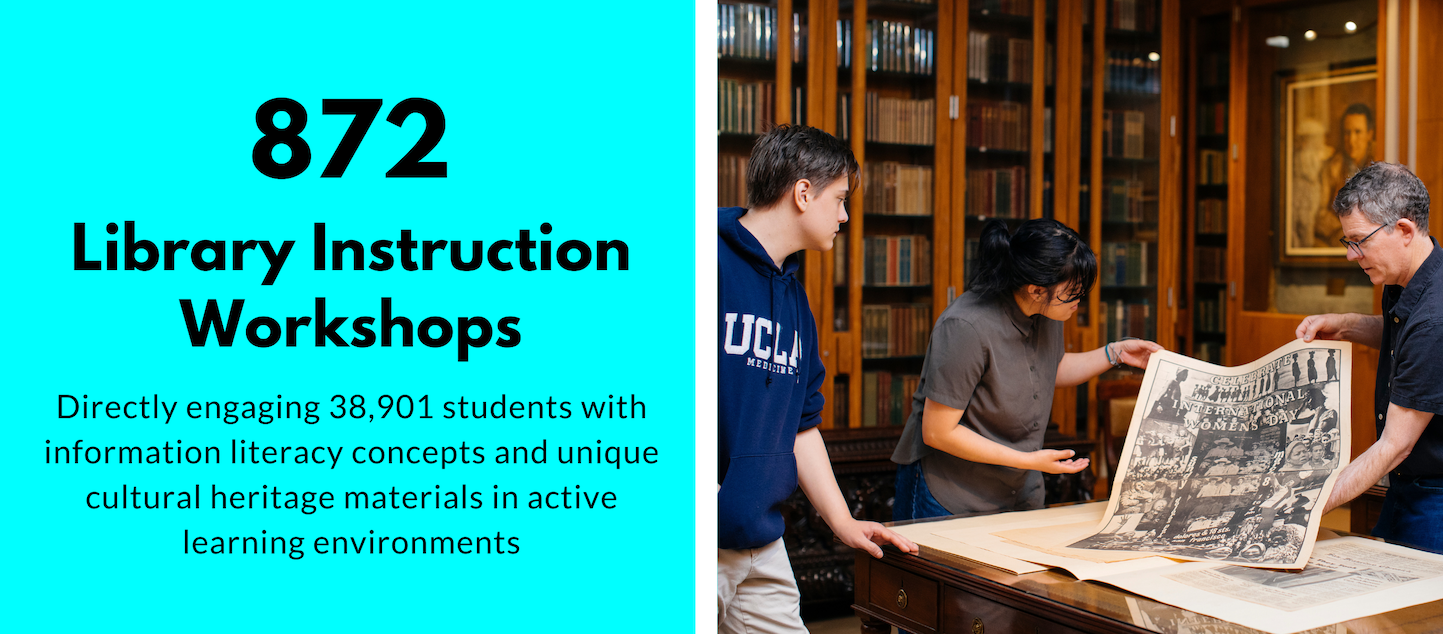 UCLA Library bridges collections, scholarship and innovation, helping students, faculty and public scholars generate knowledge at the intersection of teaching, learning and research. The 2024-2025 UCLA Library Impact Report highlights three stories that demonstrate the Library's deep connection to the university’s academic mission and the broader Los Angeles region. From preserving and making accessible a century of community memory nearly lost in the tragic Los Angeles wildfires, to helping an undergraduate engage their curiosity — resulting in a prize-winning research project, to contributing to L.A.’s cultural imagination through one of the most expansive arts events in the world, UCLA Library remains steadfast in its commitment to advance the university’s local and global priorities while prioritizing scaled and targeted services and preeminent collections that promote academic success. Our campus benefits from the vast expertise across all disciplines and the enduring curiosity of all who engage in the Library. The intersections of knowledge at UCLA Library brings the world to our patrons. In doing so, we support their individual trajectories toward creating a future that is sustainable, healthy and informed.